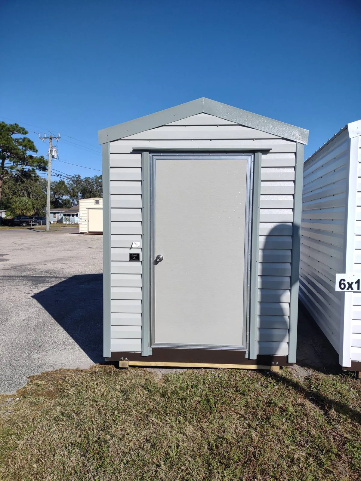 On the lot! Here's a new 6 x 8 Lapsider shed. 1 vent, 1 light, 1 outlet. Always free delivery and professional installation! Give us a call or stop by today!