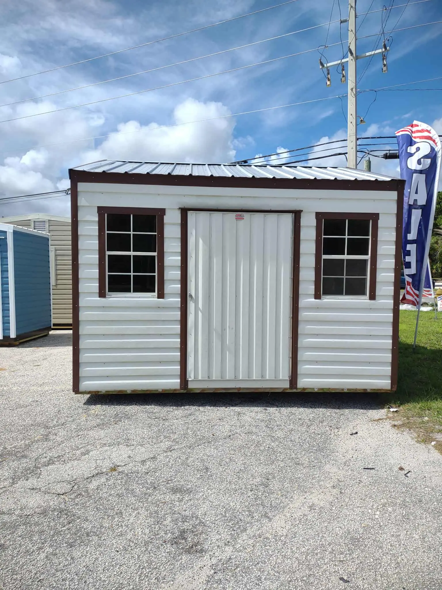 This is a used 12 x 12 preowned shed. Has 2 windows, 2 vents, 1 light/outlet. $4,000 with free professional delivery and installation! Stop by or give us a call today!